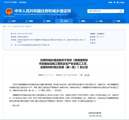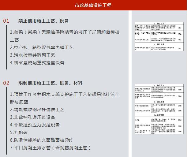 房屋建筑和市政基礎(chǔ)設(shè)施工程從業(yè)單位要在本公告發(fā)布之日起9個月后,全面停止在新開工項目中使用本《目錄》所列禁止類施工工藝、設(shè)備和材料;本公告發(fā)布之日起6個月后,新開工項目不得在限制條件和范圍內(nèi)使用本《目錄》所列限制類施工工藝、設(shè)備和材料。負有安全生產(chǎn)監(jiān)督管理職責(zé)的各級住房和城鄉(xiāng)建設(shè)主管部門依據(jù)《建設(shè)工程安全生產(chǎn)管理條例》有關(guān)規(guī)定,開展對本《目錄》執(zhí)行情況的監(jiān)督檢查工作。